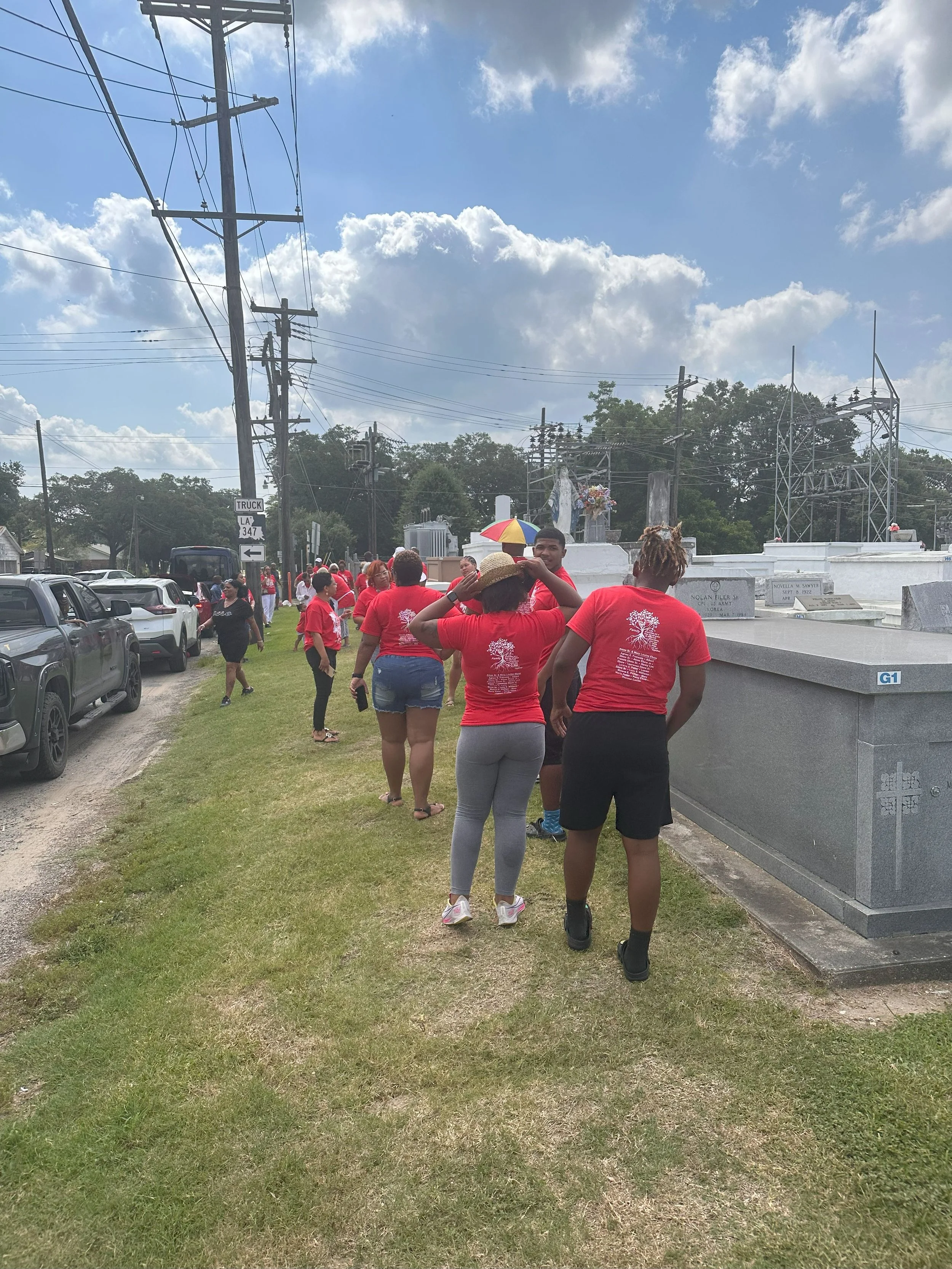 ONE OF THE TOUR STOPS WAS A CEMETERY. FAMILY MEMBERS WENT IN SEARCH OF THE MATRIARCH'S TOMB