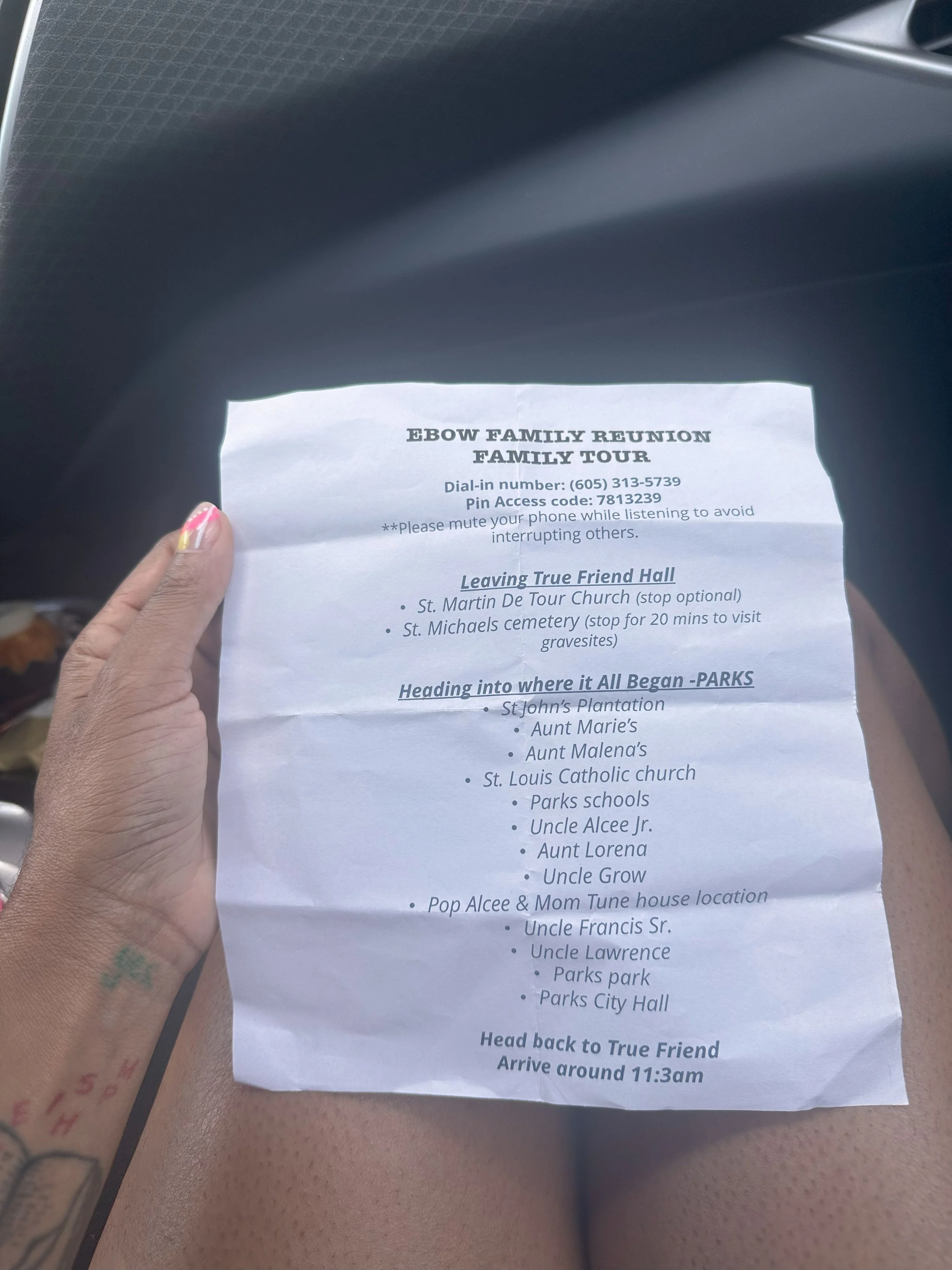 THE ITINERARY FOR THE FAMILY TOUR ON SATURDAY MORNING