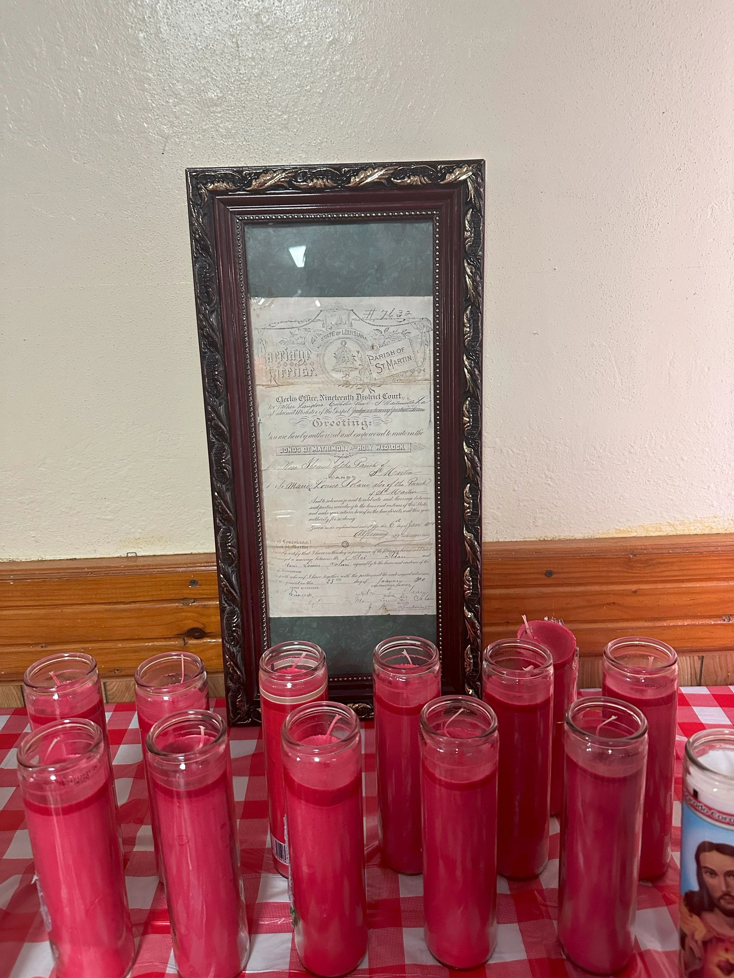 A FRAMED COPY OF THE MARRIAGE CERTIFICATE OF THE FAMILY'S MATRIARCH AND PATRIARCH WHO HAVE LONG SINCE PASSED AWAY